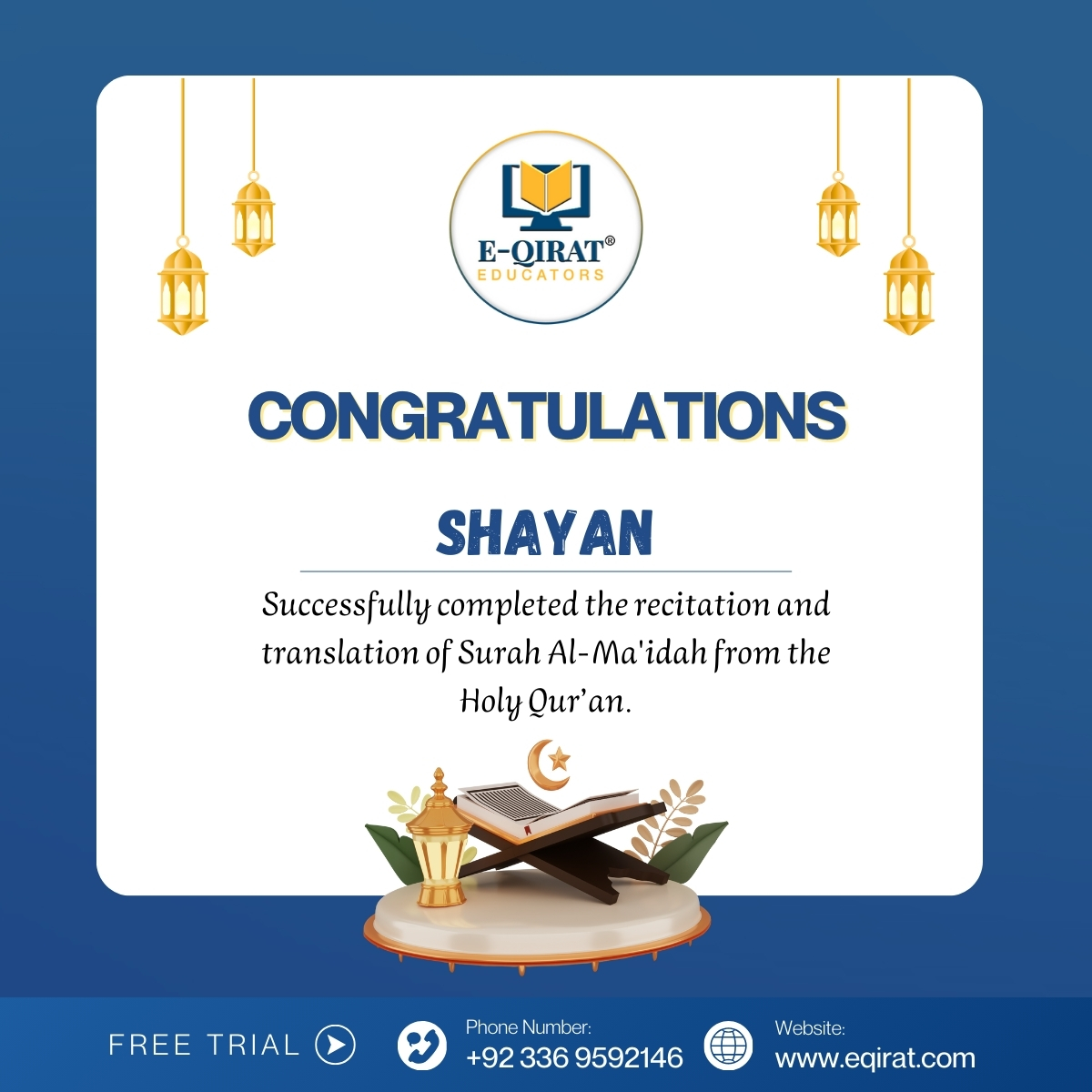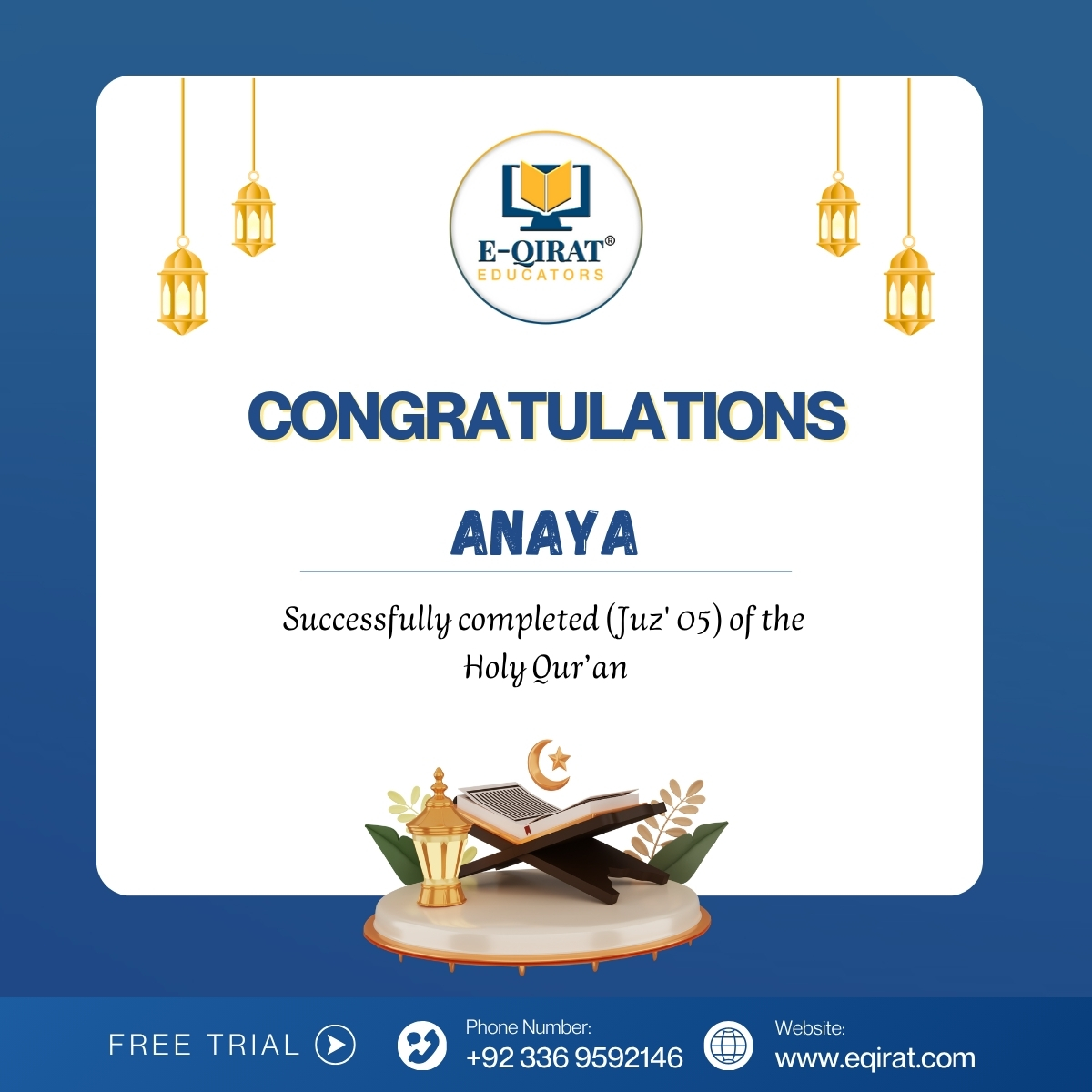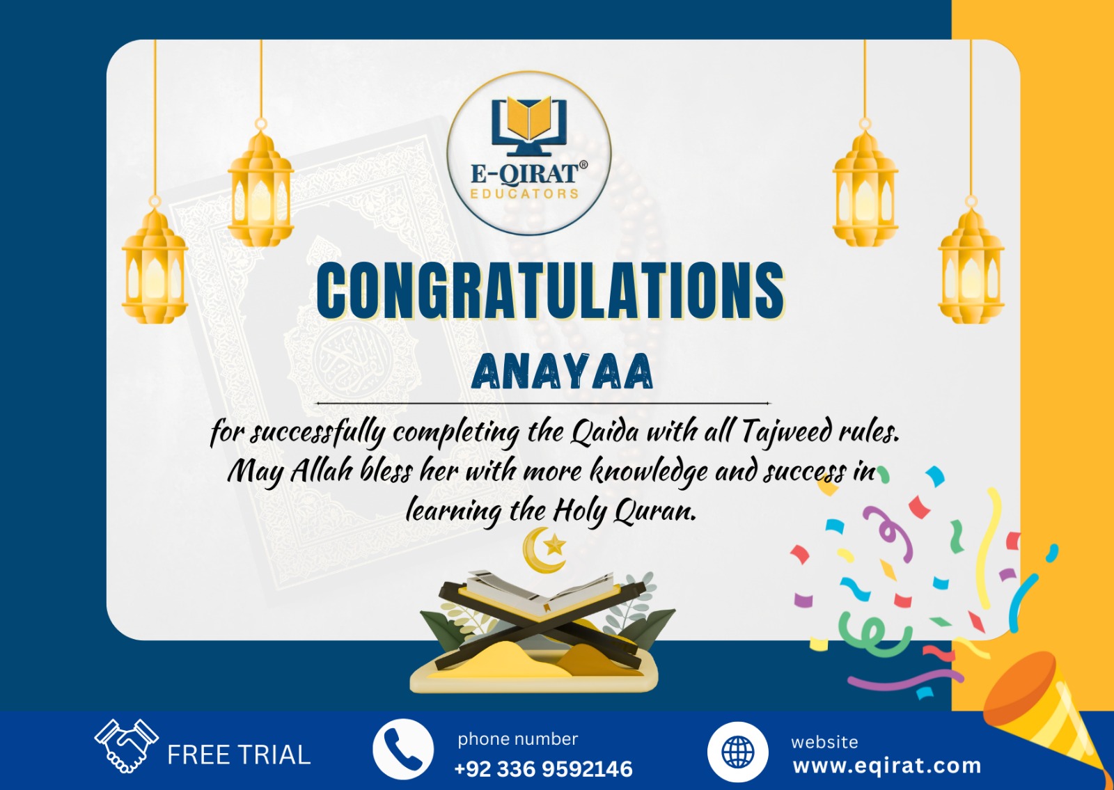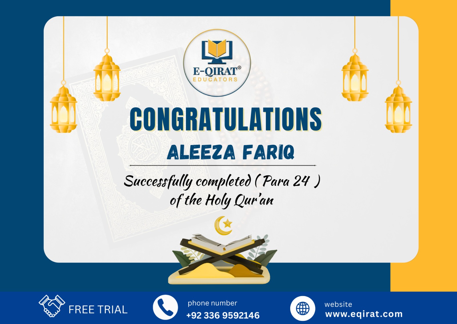 We proudly recognize the success of our students who have successfully completed their Quranic and academic courses with E-Qirat Academy at an international level.